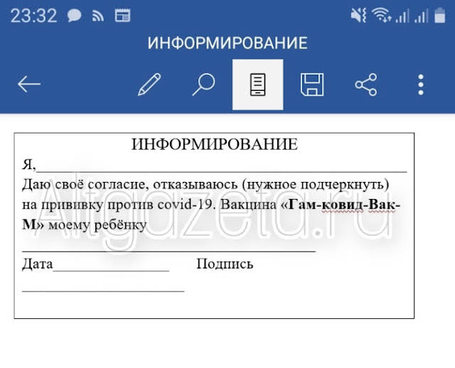 «“Добрый вечер. Не знаю в курсе Вы или нет... Сегодня получили сообщение на WatsApp от учителя о том, что в школе будут вакцинировать от ковида (добровольно, бланк отказа/согласия приложили). Интересно, что об этом думают родители. Если будете публиковать, на меня, плиз, не ссылайтесь. Это 5-Аня гимназия. Текст такой: «Уважаемые родители! В школе будет проходить вакцинация детей против covid-19. Заполните, пожалуйста, информационный квиток и передайте его через детей в четверг. Спасибо», - пишет читательница altgazeta.ru. С автором сообщения лично не знаком, но у нас с ней многолетняя переписка по поводу городских новостей. Надеюсь, что инфа, как и бланк - не фейк, но пока прошу относится к ней крайне критически.