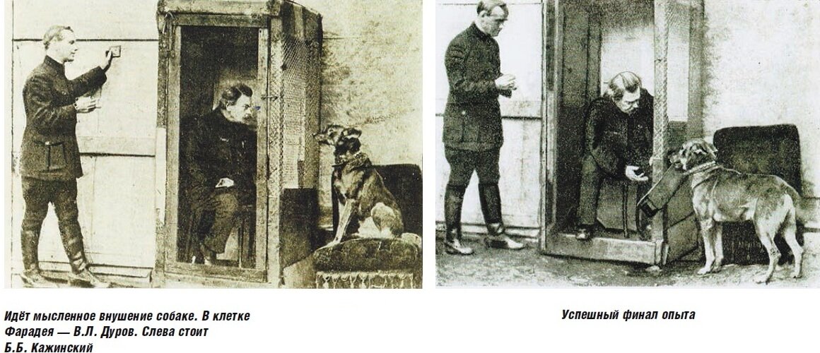 В 1924 году под руководством Кажинского эксперимент попробовали на животных, заставляя их по средством передачи мысли передавать определённые предметы, которые лежали среди прочих других прочих. Животные слушались и приносили то, что требовалась.